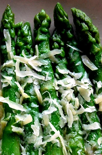 3. While the asparagus is still hot, toss in a bowl with the olive oil, Parmesan, lemon juice and lemon rind. Salt and pepper to taste. Serve warm or room temperature.
